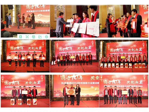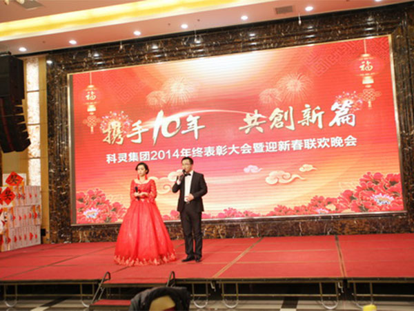 2月10日,科靈集團2014 “攜手10年,共創新篇”年度表彰大會暨新春聯歡晚會慶典于濰坊君豪大酒店隆重舉行。年會由年度總結、新年晚會、優秀表彰、年終晚宴四部分構成,集團公司及子公司全體員工齊聚一堂,共話公司一年來的發展,規劃新一年的戰略方向。
