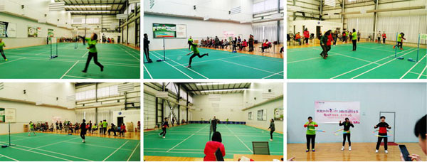 本場運動會設有羽毛球比賽、綁腿賽跑等趣味性強的項目。賽場上,換裝登場的女同志們,一個個變成了活力四射的運動女將,一展巾幗風彩;無論是久經賽場的精兵,還是羽翼未豐的新秀,奮力拼搏,爭奪每場每局每一分。女選手們剛柔并濟,輕盈利落,撲球扣殺、你追我趕,在追求速度與技巧中掌握平衡,增進友情;同時,比賽場外加油聲、歡呼聲、笑語聲此起彼伏,“我運動、我健康、我快樂”的精神洋溢整個賽場。