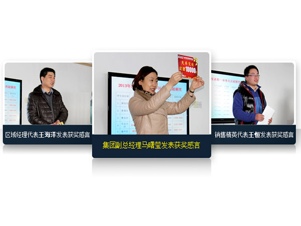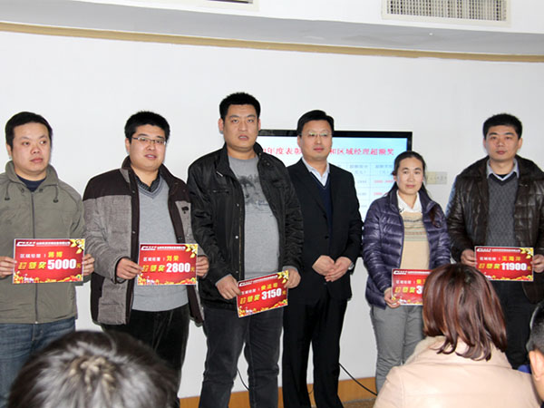 隨后集團(tuán)董事長葛建民、副總經(jīng)理馬曙瑩、范之敬、劉春海為上年度完成業(yè)績超額的大區(qū)經(jīng)理及銷售精英等進(jìn)行現(xiàn)場表彰頒獎。獲獎代表發(fā)表獲獎感言,集團(tuán)副總經(jīng)理馬曙瑩代表獲獎員工分享“知識與思維”的銷售感悟,鼓勵大家合理運(yùn)用資源人脈,發(fā)揮專業(yè)優(yōu)勢,抓住機(jī)遇,勇創(chuàng)佳績。