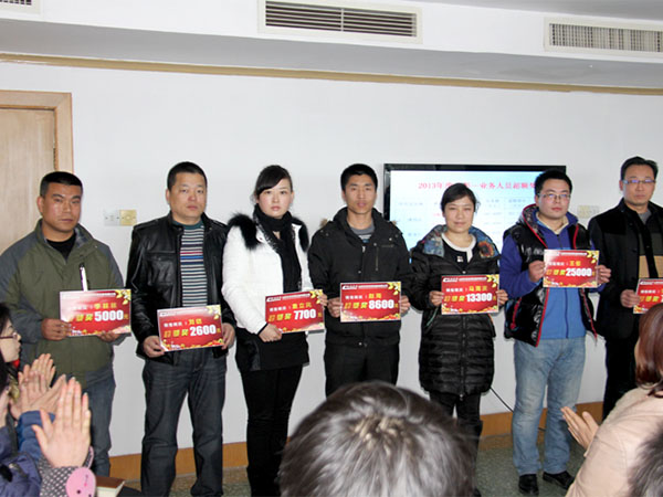 “金蛇狂舞辭舊歲,駿馬奔騰展宏圖”。2月14日,由人力資源經(jīng)理單渭菊主持的科靈2013年度銷售工作總結(jié)表彰大會在公司會議室如期召開。集團(tuán)董事長葛建民、副總經(jīng)理馬曙瑩、范之敬、劉春海及各大區(qū)銷售經(jīng)理、公司全體銷售精英、技術(shù)部、財(cái)務(wù)部、銷售辦公室等管理部門負(fù)責(zé)人等共90多人出席了本次會議。大會對上年的營銷工作進(jìn)行了總結(jié)討論,并表彰了榮獲科靈集團(tuán)綜合評定的區(qū)域經(jīng)理超額獎勵、銷售精英超額獎勵、大單突破特別獎勵等的十五名集團(tuán)員工。末尾由葛建民董事長對集團(tuán)銷售人員提出2014年度工作展望,期待全體銷售人員創(chuàng)新銷售模式,拼搏創(chuàng)造輝煌,取得更大更好的業(yè)績。