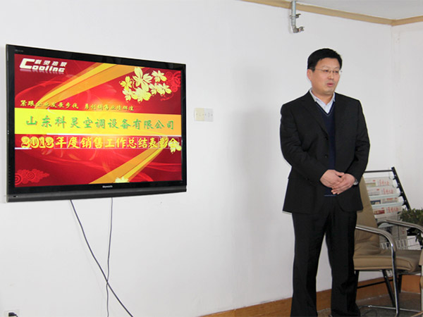 銷售總經(jīng)理范之敬首先回顧上年度主要銷售工作,總結(jié)提出:調(diào)整銷售政策,加強(qiáng)績效考核;加強(qiáng)團(tuán)隊(duì)建設(shè),提高銷售能力;技術(shù)展會交流,提升品牌形象;狠抓重點(diǎn)項(xiàng)目,全力業(yè)績突破。通過對上一年的銷售合同及回款等的數(shù)據(jù)分析,范總肯定了山東、華北、中南、西北大區(qū)銷售任務(wù)的完成情況,工業(yè)應(yīng)用項(xiàng)目有所突破等。也指出公司業(yè)務(wù)發(fā)展尚不均衡,存在一定空白市場,地源熱泵市場開發(fā)潛力巨大等等情況。