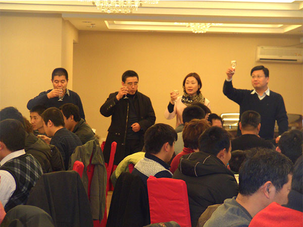 總結(jié)表彰大會結(jié)束后,公司在濰坊建金商務(wù)酒店舉行元宵午宴。公司全體員工在喜慶歡快的氣氛中度過一個中西合璧的“湯圓玫瑰節(jié)”。