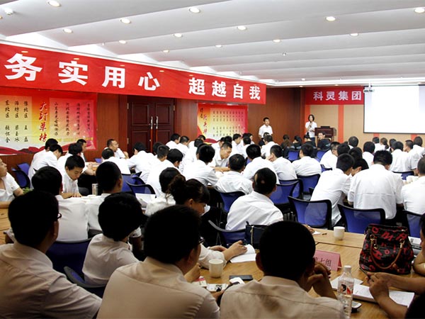 2013年7月28-30日,為期三天的科靈集團上半年銷售工作會議在青州市委黨校召開,董事長葛建民、副總經理馬曙瑩、劉春海、范之敬及各大區銷售經理、公司全體銷售精英、技術部、財務部、公司辦公室等管理部門負責人等共100多人出席了本次會議。