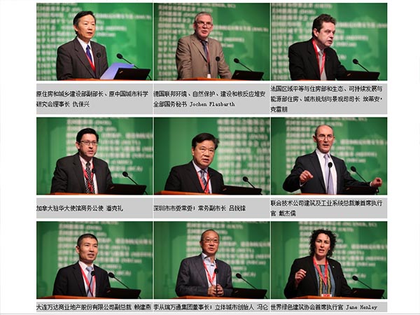 大會(huì)在28日上午九點(diǎn)整準(zhǔn)時(shí)開(kāi)始,由國(guó)家住房和城鄉(xiāng)建設(shè)部副部長(zhǎng)仇保興主持,貴州省人民政府副省長(zhǎng)慕德貴、加拿大駐華大使商務(wù)公使潘克禮、深圳市常務(wù)副市長(zhǎng)呂銳鋒、聯(lián)合技術(shù)公司建筑及工業(yè)系統(tǒng)總裁兼執(zhí)行官戴杰儒、方興地產(chǎn)(中國(guó))有限公司總經(jīng)理李從瑞向大會(huì)致辭。德國(guó)聯(lián)邦環(huán)境、自然保護(hù)、建設(shè)和核反應(yīng)堆安全部國(guó)務(wù)秘書(shū)Jochen Flasbarth;法國(guó)區(qū)域平等與住房部和生態(tài)、可持續(xù)發(fā)展與能源部住房、城市規(guī)劃與景觀司司長(zhǎng)埃蒂安?克雷朋;大連萬(wàn)達(dá)商業(yè)地產(chǎn)股份有限公司副總裁賴建燕;萬(wàn)通投資控股股份有限公司、北京萬(wàn)通立體之城投資有限公司董事長(zhǎng)馮侖;世界綠色建筑協(xié)會(huì)執(zhí)行官Jane Henley出席開(kāi)幕式,并發(fā)表演講。